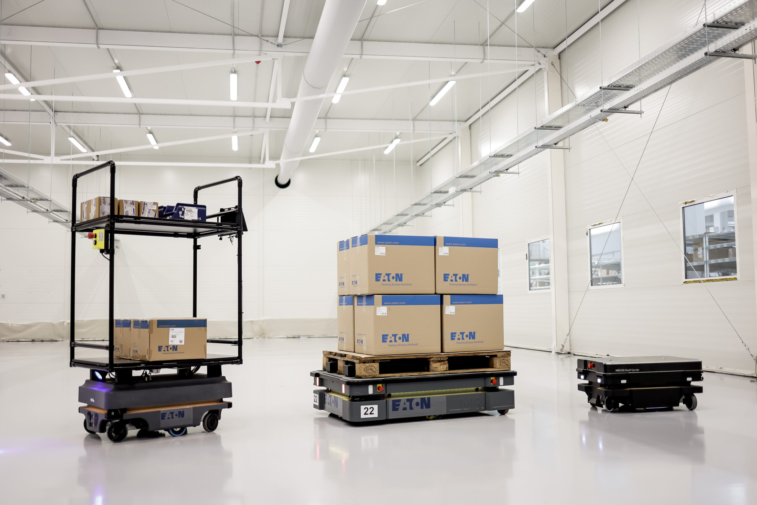 Cei patru roboți sunt din seriile MiR500 și MiR200, iar Eaton planifică să implementeze un robot din gama MiR250 pentru gestionarea transportului într-o nouă unitate de asamblare.