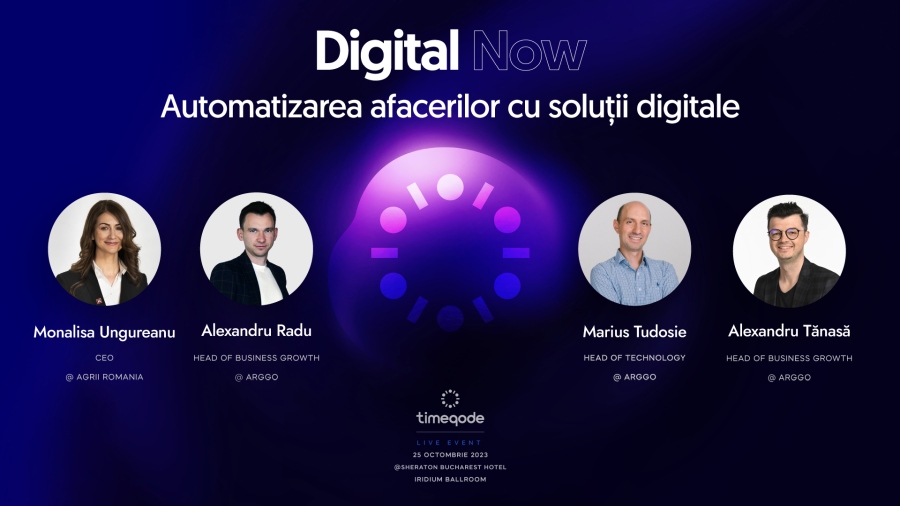 Speakerii invitați sunt: Monalisa Ungureanu – CEO @Agrii România, Marius Tudosie – Head of Technology @Arggo, Alexandru Radu – Head of Business Growth @Arggo și Alexandru Tănasă – Digital Business Advisor @Arggo. Ei vor aborda tema digitalizării în afaceri, de la soluții standard consacrate până la soluții complet personalizate și vor oferi perspective tangibile asupra acestui subiect. Pentru înregistrarea la eveniment puteți accesa acest link.