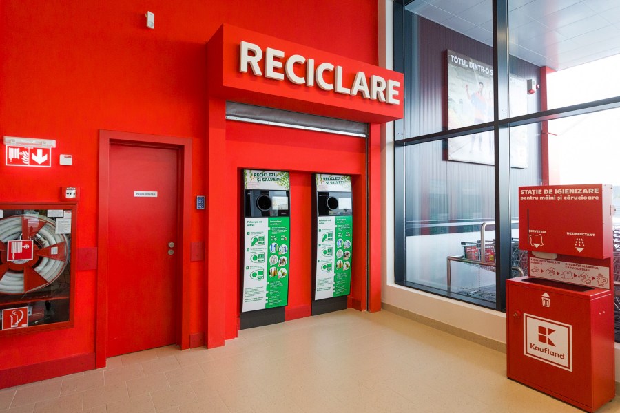 - În interiorul magazinului, clienții vor găsi un automat de tip self-service, unde pot recicla ambalaje în schimbul voucherelor de extra-reducere. Pot colecta aici trei tipuri de ambalaje: PET-uri (cu volum de până la 3 litri), sticlă și doze de aluminiu (cu volum de până la 1 litru).