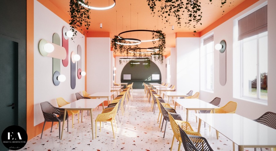 Modernizarea cantinei a durat trei luni de zile și a cuprins atât lucrări de construcții complexe (schimbare de circuit, înlocuirea instalației electrice, de apă și de încălzire, înlocuirea tencuielii, a caloriferelor, a corpurilor electrice, a gresiei și a faianței etc) cât și de design și amenajare interioară, acțiunile fiind coordonate de o echipă de arhitecți și o echipă de design interior, sub îndrumarea Alinei Amira El-Hassaina, absolventă la rândul ei a colegiului Național Bănățean.