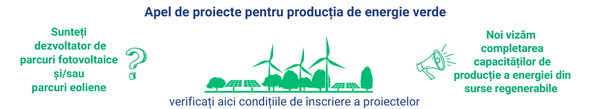 SNGN Romgaz SA, în scopul completării portofoliului de producție energie verde din resurse regenerabile, are intenția de a achiziționa parcuri fotovoltaice și/sau parcuri eoliene, în următoarele condiții: