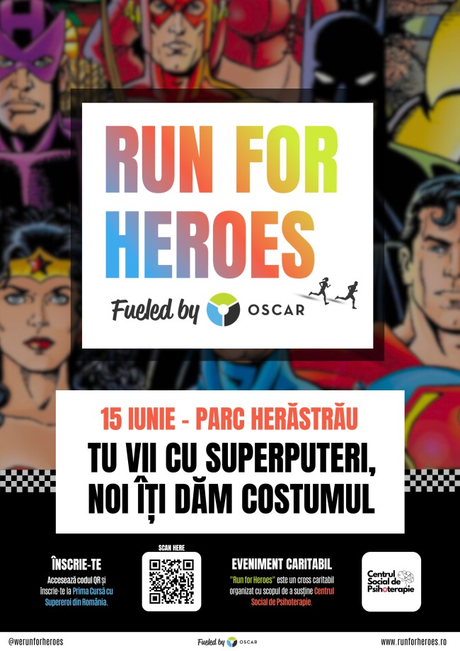 Run for Heroes vrea să facă diferența într-o luptă pe care, într-o formă sau alta, o ducem fiecare dintre noi”, a declarat Nicolae Bănică, CEO OSCAR Downstream. „Într-o societate competitivă și mereu în alertă, suntem prea puțin conștienți de cât de fragilă poate fi sănătatea mintală. Cu toții ne-am confruntat sau cunoaștem persoane care au trecut prin episoade de depresie sau anxietate, burnout, stres, relații dificile sau traume care își pun amprenta asupra vieții personale și profesionale. Este momentul să vorbim deschis despre aceste afecțiuni și despre acești eroi – oamenii care se confruntă zi de zi nu doar cu propriile răni, ci și cu stereotipurile, discriminarea și prejudecățile sociale. Îi invităm pe români să fie Supereroi pentru o zi și să alerge alături de noi, pe 15 iunie, pentru această cauză nobilă”.