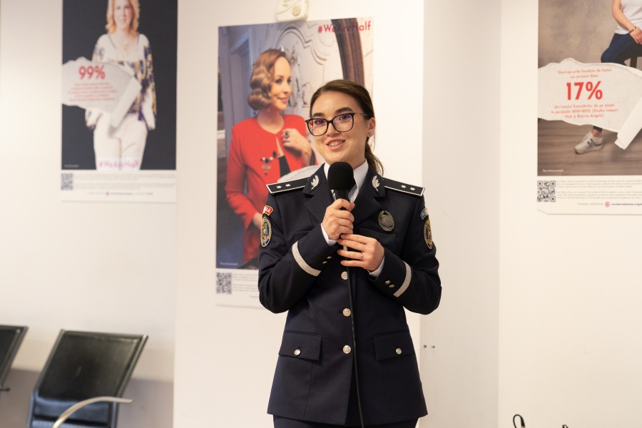 ,,La brigada rutieră unde îmi desfășor în prezent activitatea, am avut comandant o femeie. Spun am avut pentru că a avansat. Ea a avut în subordine undeva la 700 de oameni. Deci imaginați-vă, putem să ne descurcăm în orice activitate. Important este să vedem unde ne potrivim, să fiu sinceră cu voi, să ne dăm seama ce vrem să facem și să mergem către acea direcție”, a declarat Inspector de poliție Scaete lulia Mădălina.