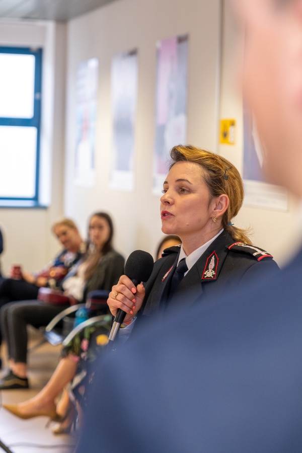 „Este un sistem dominat de partea masculină, dar noi femeile începem tot mai mult să ne punem amprenta. Pe mine, colegii mei bărbați m-au ajutat și m-au sprijinit în actul managerial. Simt o mai mare deschidere. Ni se oferă nouă femeilor oportunitatea de a accede în anumite funcții, prin concurs”, a subliniat Maior Pătruțescu Ana-Maria Larisa.