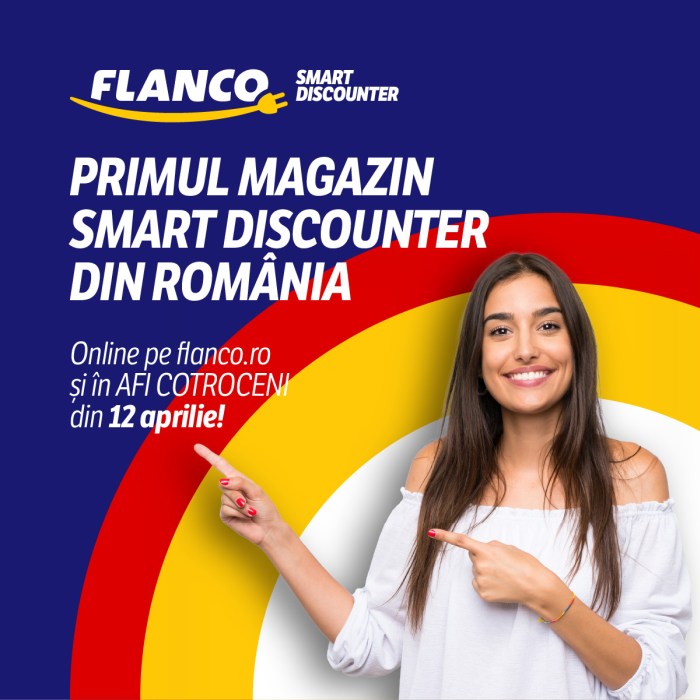 Flanco devine prima rețea de magazine Smart Discounter electro-IT din România. Numele companiei se transformă din Flanco, în Flanco Smart Discounter. Retailerul va lansa conceptul și noua poziționare în magazinul său reamenajat din AFI Cotroceni, vineri, 12 aprilie.