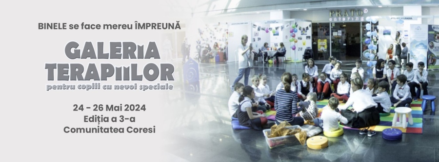 Specialiști și Terapeuți: Puteți opta să participați cu un stand de prezentare în cadrul Galeriei terapiilor care va avea loc în 24 și 25 mai în Piața cu copaci, în Coresi Shopping Mall pentru a interacționa live și a comunica direct cu famiile interesate să cunoască terapii noi și terapeuți de încredere.