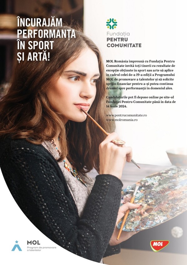 MOL România și Fundația Pentru Comunitate au dat startul înscrierilor pentru cea de-a 19-a ediție a Programului MOL de promovare a talentelor, prin care oferă sponsorizare tinerilor artiști și sportivi. Selecția este realizată de un juriu, pe baza unui concurs de proiecte care ține cont de rezultatele foarte bune obținute anterior de candidați. Candidații pot depune proiectele până pe data de 14 iunie. Aceștia pot solicita finanțare pentru a achiziționa materiale, echipamente sportive, instrumente muzicale și/sau pentru acoperirea cheltuielilor de deplasare la diferite concursuri, festivaluri, tabere de pregătire, cantonamente.