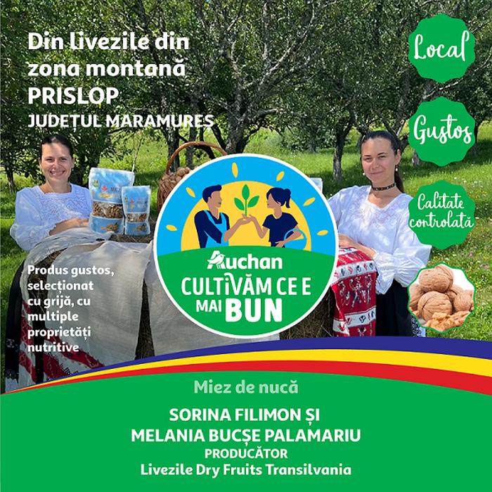 Și miezul de nucă românesc din filiera Auchan, provenit din minunatele livezi din zona montană Prislop, județul Maramureș, dezvoltat împreună cu Dry Fruits Transilvania, o afacere de familie înființată în 2015 din dorința de a valorifica o parte din producția de fructe aflată în zona montană, a primit distincția Produsul Anului 2024, un produs gustos, selecționat cu grijă, cu multiple proprietăți nutritive, un aliat perfect în orice dietă sănătoasă, extrem de apreciat de către clienți.