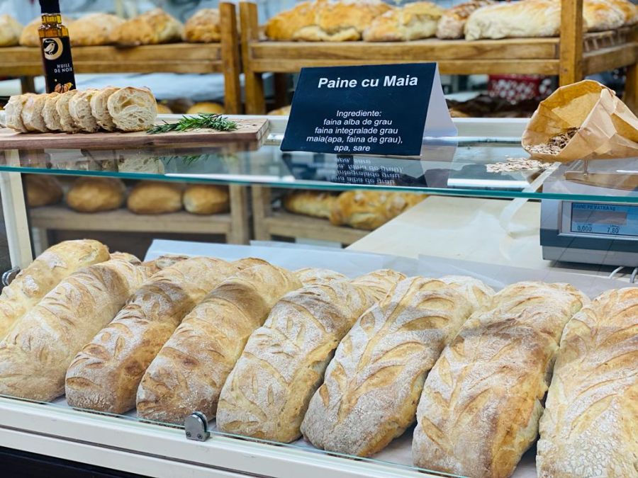 Gama de pâine cu maia producție proprie Auchan cuprinde: pâine cu făină albă de grâu (simplă, cu brânzeturi, cu ceapă, cu măsline, cu semințe), cu făină integrală de grâu, cu făină neagră, cu făină de secară. Pâinea cu maia are un adaos scăzut de drojdie, este crescută printr-un proces lent de dospire la rece, elemente care îi dau o textură aerată, o crustă crocantă și un gust fin, desăvârșit. În plus, semințele adăugate dau un plus de savoare și valoare nutritivă. Gama a fost dezvoltată cu pâine din făină integrală din grâu și secară, măcinate la piatră, cu adaos de semințe. Făina măcinată la piatră conține toți nutrienții cerealelor, oferindu-i pâinii un gust aparte, gustul pâinii de odinioară, tradiționale, plămădite în casă. Aceste făinuri sunt bogate în fibre, minerale și vitamine.