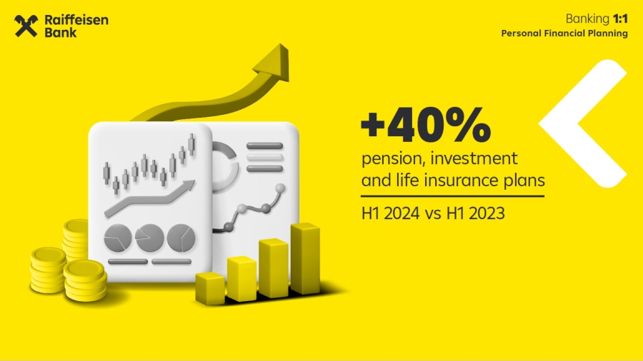 Planificarea financiară personală rămâne un motor constant de creștere în strategia pe termen lung a Raiffeisen Bank România. În prima jumătate a anului 2024, numărul de planuri de pensii, planuri de investiții și asigurări de viață nou deschise a crescut cu peste 40% comparativ cu perioada similară din 2023. Totodată, digitalizarea fluxurilor și simplificarea interacțiunii cu clienții rămân coordonate esențiale pe toate segmentele, fie că este vorba de operațiuni curente, conturi de economii, depozite la termen, asigurări de viață sau fonduri de investiții. Numărul celor care și-au deschis cont Raiffeisen direct din aplicația de mobile banking a crescut cu aproximativ 300% în prima jumătate a anului comparativ cu aceeași perioadă de anul trecut, iar plățile online au înregistrat un avans de 30%.