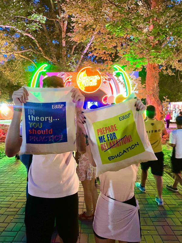 Cu sprijinul Laura Hincu – Silk & Cashmere, echipa EduUP a purtat ținute din materiale premium, perfect adaptate atmosferei de festival.