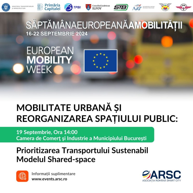 Asociația Română pentru Smart City (ARSC) și TPBI, în parteneriat cu Primăria Capitalei, organizează conferința „Mobilitate Urbană și Reorganizarea Spațiului Public: Prioritizarea Transportului Sustenabil – Modelul Shared-space”. Evenimentul va avea loc la Camera de Comerț și Industrie a Municipiului București, în cadrul Săptămânii Europene a Mobilității, și își propune să aducă în prim-plan soluții inovatoare pentru dezvoltarea urbană sustenabilă.