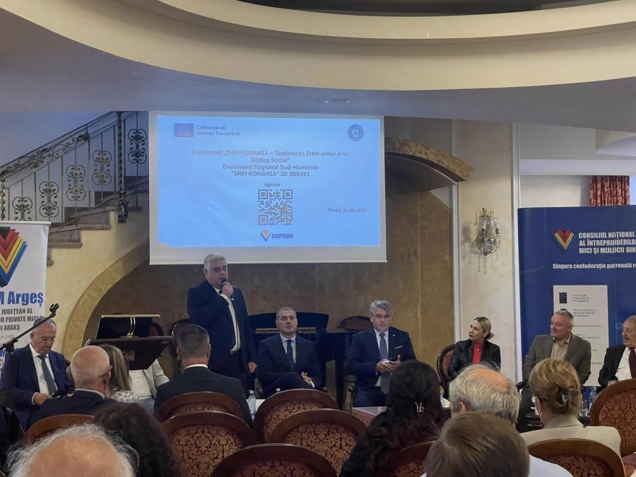 Astăzi, 24 septembrie 2024, Consiliul Naţional al IMM-urilor din România (CNIPMMR), în colaborare cu Patronatul Întreprinderilor Mici și Mijlocii din Argeș (PIMM Argeș), a desfășurat evenimentul regional dedicat IMM-urilor din zona Sud Muntenia. Evenimentul, organizat sub egida „IMM ROMÂNIA – Susținerea IMM-urilor prin Dialog Social”, a adus laolaltă peste 100 de participanți, reprezentanți ai mediului de afaceri, autorităților locale și sectorului public.