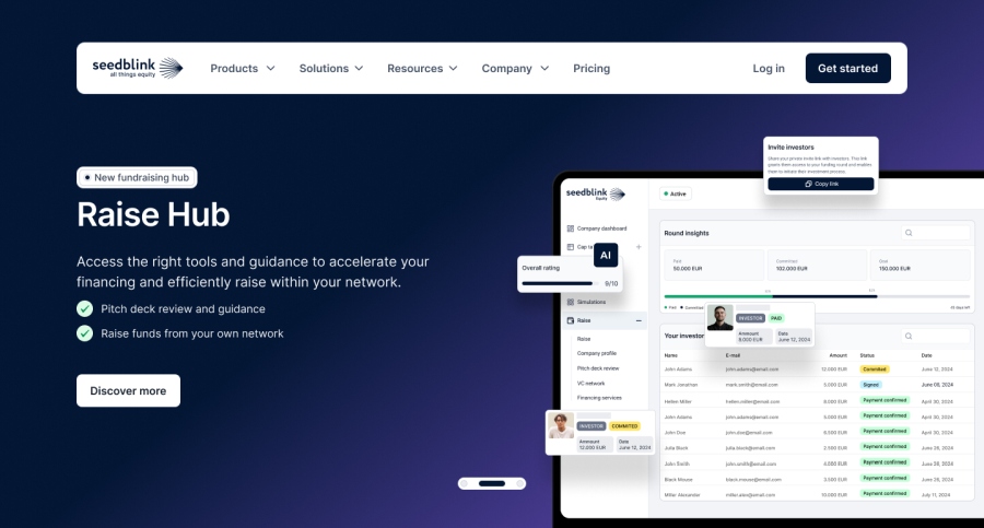 • Management post-strângere de fonduri: Integrat cu platforma existentă de gestionare a capitalului privat (Equity) a SeedBlink, Raise Hub oferă o guvernanță eficientă a investitorilor, simplificând pregătirea pentru runde viitoare și tranzacții secundare.