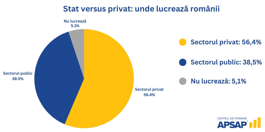 Un studiu realizat de Centrul de Formare APSAP, unul dintre cei mai mari furnizori de cursuri de formare profesională din România, relevă că aproape 60% dintre români preferă să lucreze în sectorul privat, în timp ce aproximativ 40% optează pentru cel public. Majoritatea românilor consideră că salariile sunt mai mari în companiile private, 76% dintre angajații care câștigă peste 12.000 de lei pe lună fiind încadrați în acest sector. De asemenea, tinerii predomină în companiile private, având în vedere că 82% dintre respondenții cu vârsta cuprinsă între 18 și 25 ani activând în acest sector.