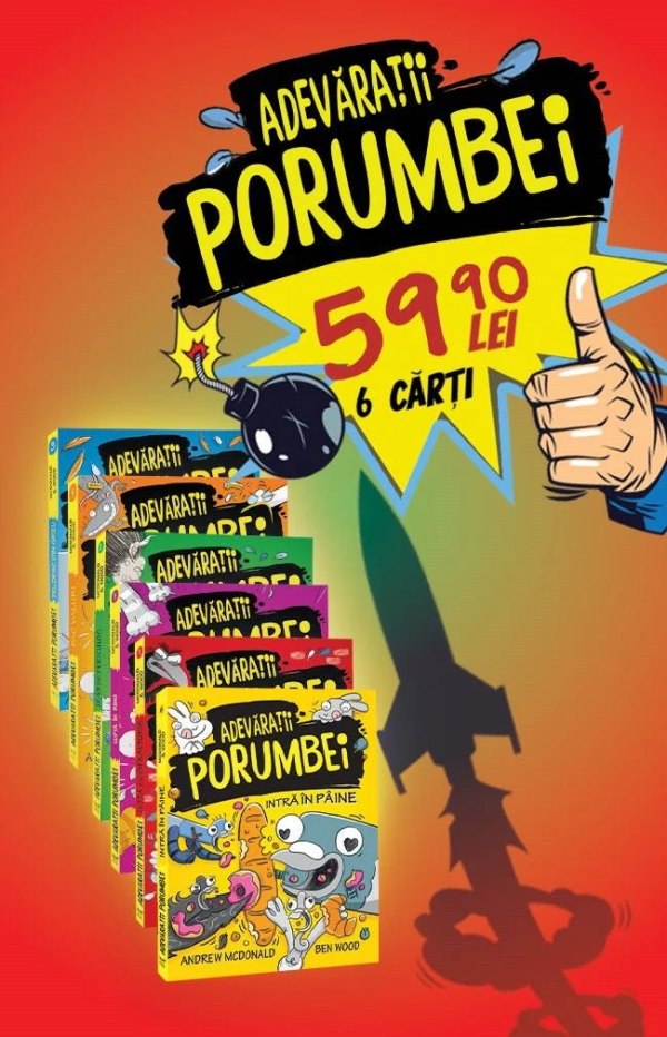 Editura Publisol a pregatit oferte speciale si pentru micii cititori pasionati actiune si farse amuzante. Adevaratii porumbei, colecția de 6 volume de benzi desenate despre o echipă formidabilă care protejează orașul, rezolvă mistere și lupta cu infractorii, este disponibilă la prețul special de 69,90 lei. Oferta include pe lângă cele 6 volume și 2 caiete școlare cadou și cutia de colecție.