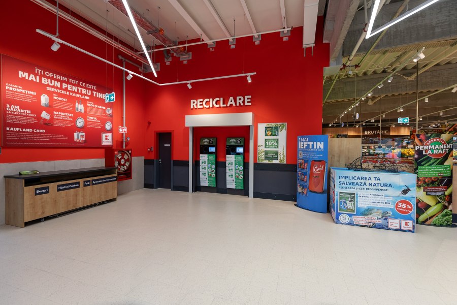 - În interiorul magazinului, clienții vor găsi un automat de reciclare, de tip self-service, unde pot recicla ambalaje în schimbul voucherelor de extra-reducere. Pot aduce aici și ambalaje din PET, sticlă și metal (cu volum de până la 3 litri), garanția de 0,50 RON fiind restituită doar pentru ambalajele cu simbolul „Ambalaj cu garanție” tipărit pe etichetă.