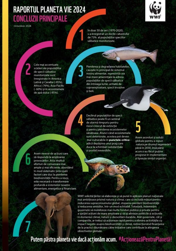 WWF – World Wide Fund for Nature / Fondul Mondial pentru Natură lansează a 15-a ediție a publicației emblematice bienale Living Planet Report / Raportul Planeta Vie, un studiu cuprinzător despre tendințele în biodiversitatea globală și sănătatea planetei.