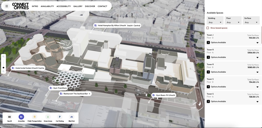 Bright Spaces și Schroders Capital și-au unit forțele pentru a lansa o platformă digitală 3D interactivă menită să eficientizeze operațiunile imobiliare și să revoluționeze experiențele de închiriere la Connect Offices, un complex multifuncțional de birouri de peste 50 000 m² situat deasupra centrului comercial Hoog Catharijne din centrul orașului Utrecht. Acest parteneriat va valorifica masterplanurile 3D și planificarea personalizată a spațiului în 3D pentru a îmbunătăți modul în care sunt gestionate și comercializate proprietăți imobiliare de top.