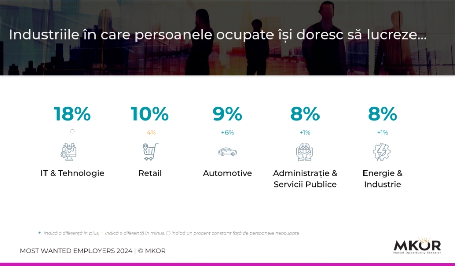 Studiu MKOR: Top Angajatori 2024: 9 din 10 Români Aleg IT-ul și Retailul pentru Oportunități Profesionale
