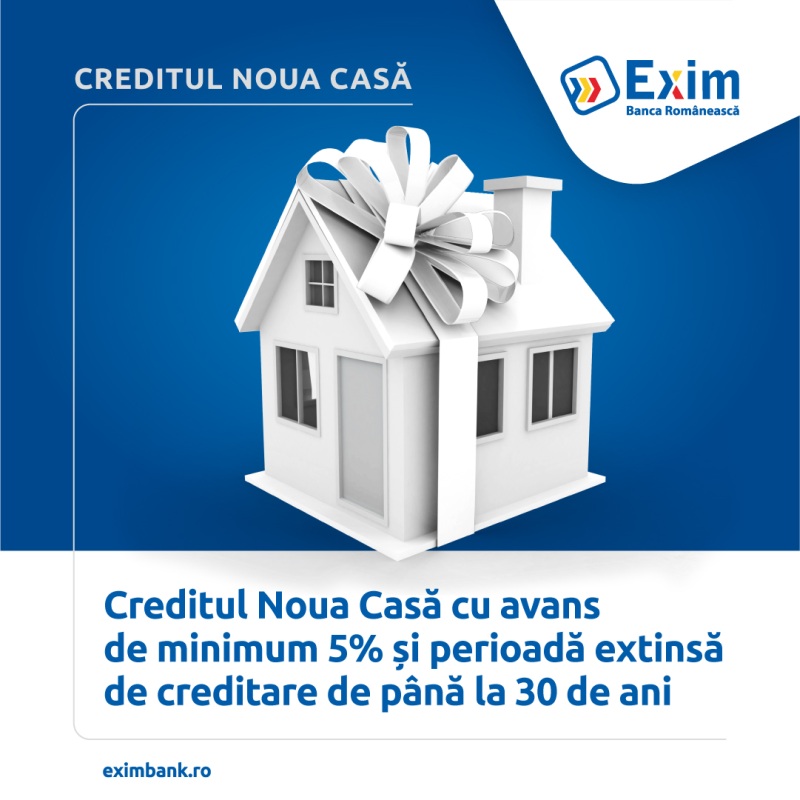 Mai multe detalii despre oferta Exim Banca Românească pentru ”Noua Casă”, pe www.eximbank.ro