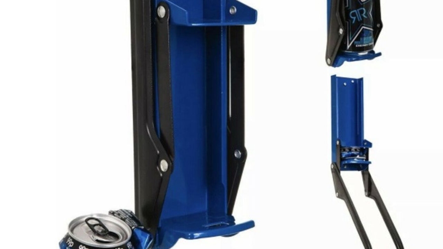 - Pârghie standard. Are un mâner lung și un suport metalic în care așezi PET-ul ori doza. Ai doar de apăsat mânerul în jos, iar recipientul este presat progresiv.
