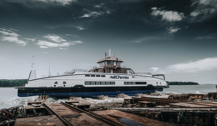 Feribotul, lansat la apă săptămana trecută, este primul dintr-o comandă mai mare de patru nave diesel-hibrid echipate cu baterii, care va crește numărul total de nave Damen din flota BC Ferries la zece.