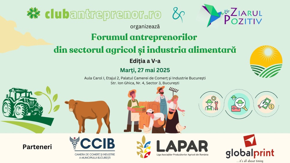 Pe 27 mai 2025, Club Antreprenor și Ziarul Pozitiv au organizat cea de-a cincea ediție a Forumului antreprenorilor din sectorul agricol și industria alimentară, la Palatul Camerei de Comerț și Industrie București.