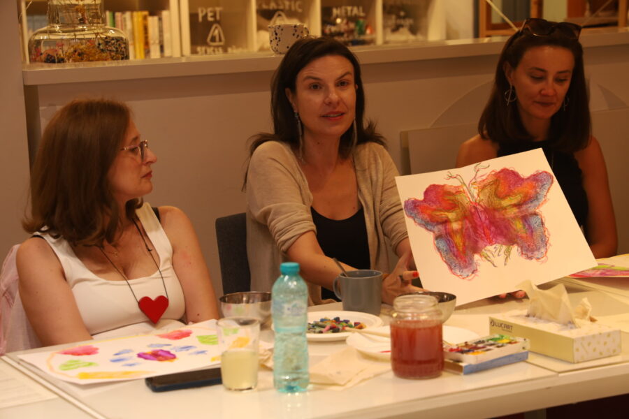 WHW reunește artiste, educatoare culturale și o psihoterapeută într-un demers comun de susținere prin artă, având ca scop nu doar exprimarea individuală, ci și formarea unei comunități – un grup de sprijin și sororitate care va continua dincolo de durata atelierelor, la Seneca Anticafe.