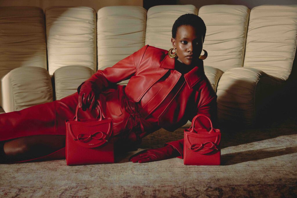 În centrul colecției capsule se află un trench maxi roșu frapant, o abordare modernă a stilului vestimentar power, cu o curea lungă ce poate fi legată cu o fundă – un motiv creionat în întreaga colecție. Alte piese remarcabile includ o haină din piele cu guler de blană, o jachetă sculpturală în stil pelerină cu elemente detașabile, pantaloni și pantaloni culotte din piele. Ținutele de seară sunt exprimate printr-o rochie maxi din dantelă neagră care explorează romantismul întunecat și o rochie-slip argintie cu croială oblică, care se așează elegant pe corp. Sacouri supradimensionate cu revere asimetrice, o cămașă structurată cu guler înalt și pantaloni fluidi completează selecția prêt-à-porter.