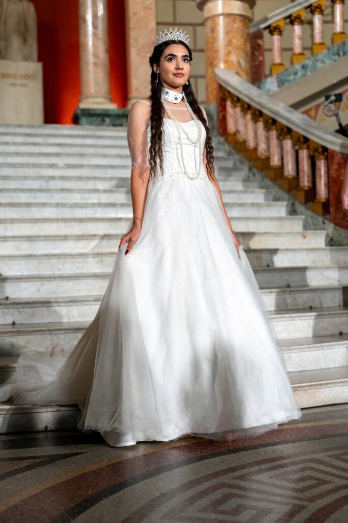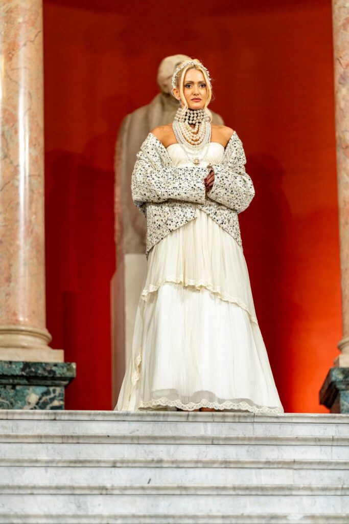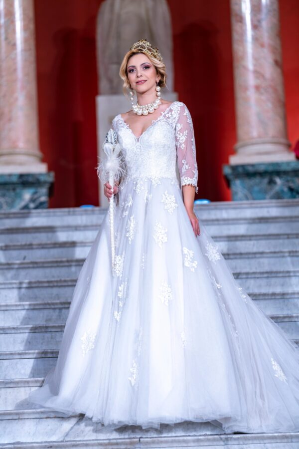 Colecția dedicată Reginei Maria a României transpune regalitatea într-un limbaj vestimentar modern. Siluetele amplificate, detaliile elaborate și construcțiile sofisticate evocă demnitatea, forța și eleganța unei figuri istorice fundamentale. Această reinterpretare artistică nu este o reconstrucție istorică, ci o formă de reverență contemporană pentru valorile pe care le reprezintă.