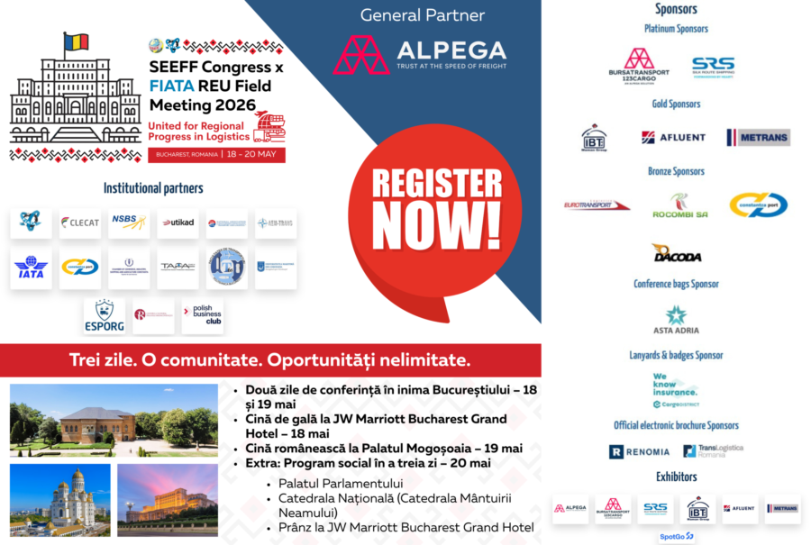 În perioada 18 – 20 mai 2026, Bucureștiul găzduiește unul dintre cele mai importante evenimente ale anului pentru sectorul transporturilor, expedițiilor de mărfuri și logisticii: Congresul European al Caselor de Expediții (SEEFF x FIATA REU Field Meeting 2026).