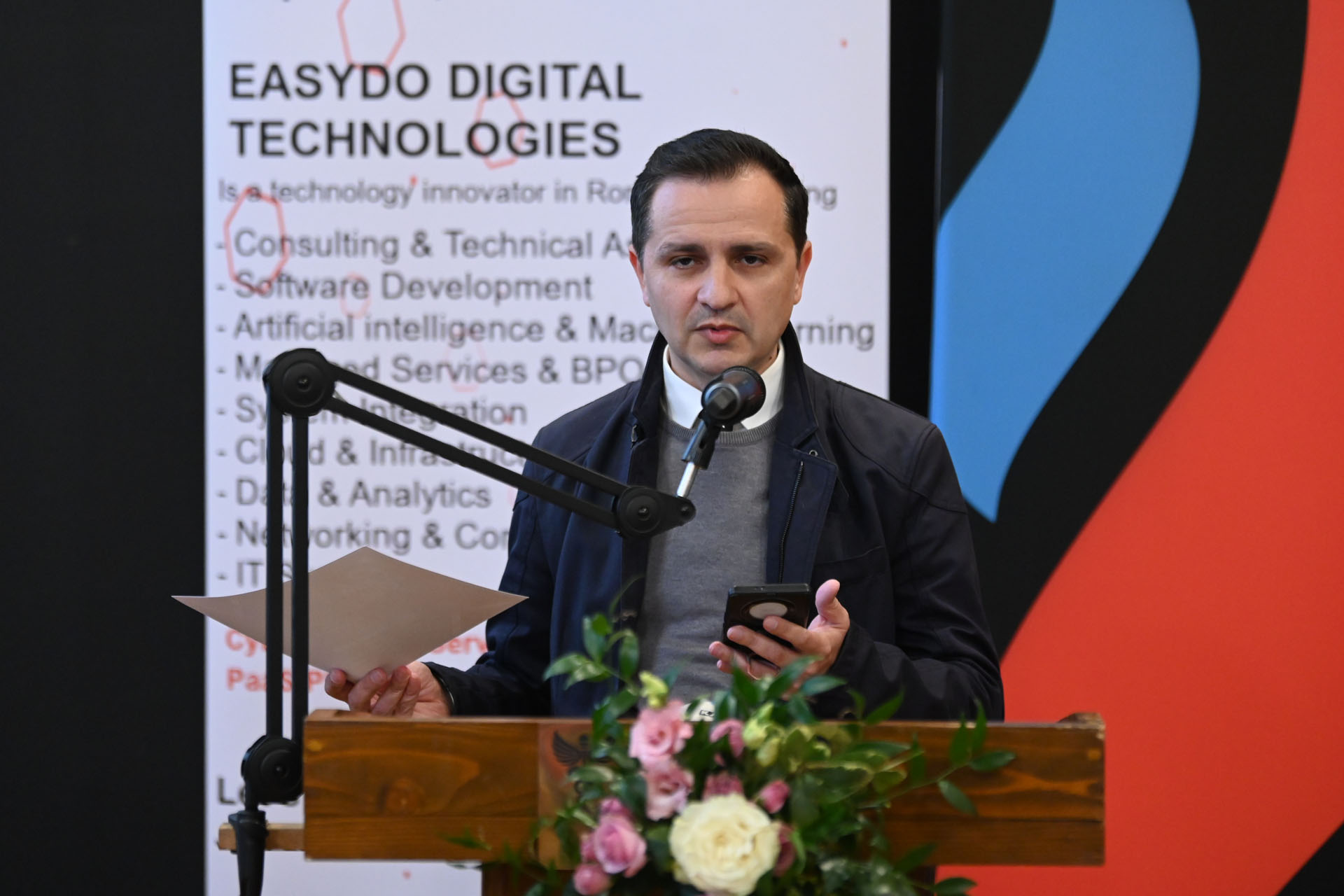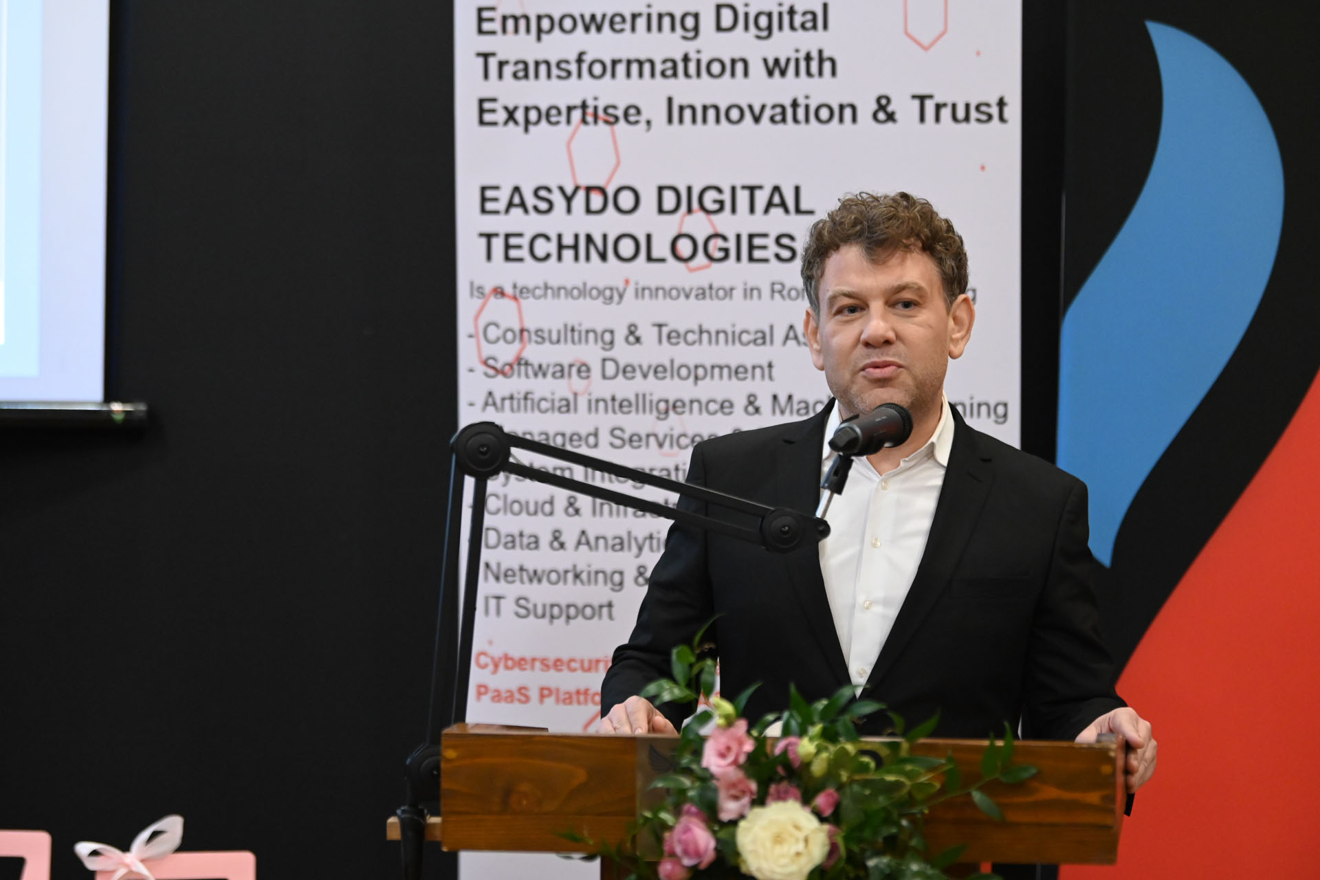 Înainte de ceremonia de premiere a fost o sesiune de mesaje din partea partenerilor Galei. Au vorbit Mihaly Nemeti, Bitumen Sales Manager, SOCAR și David Coyne, CEO, EASYDO Group.
