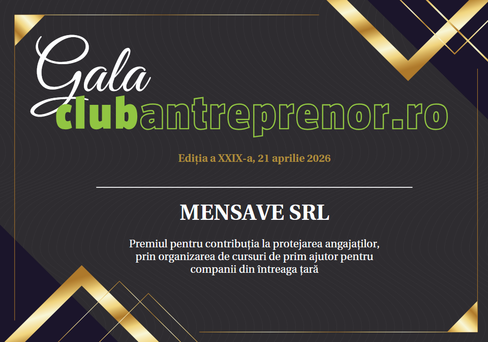 MENSAVE SRL – Premiul pentru contribuția la protejarea angajaților, prin organizarea de cursuri de prim ajutor pentru companii din întreaga țară