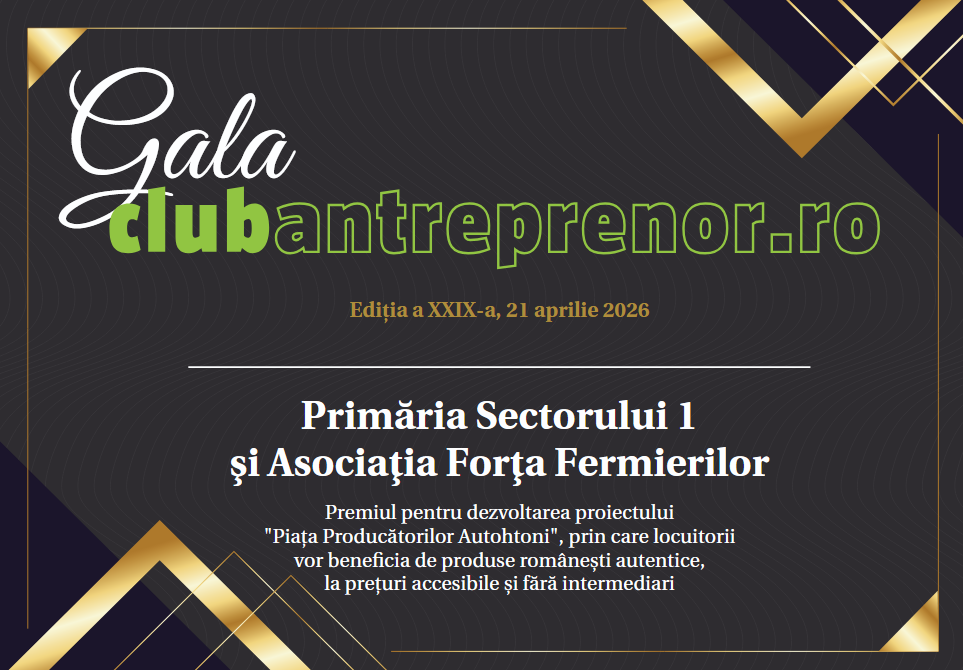 Primăria Sectorului 1 şi Asociaţia Forţa Fermierilor – Premiul pentru dezvoltarea proiectului “Piața Producătorilor Autohtoni”, prin care locuitorii vor beneficia de produse românești autentice, la prețuri accesibile și fără intermediari