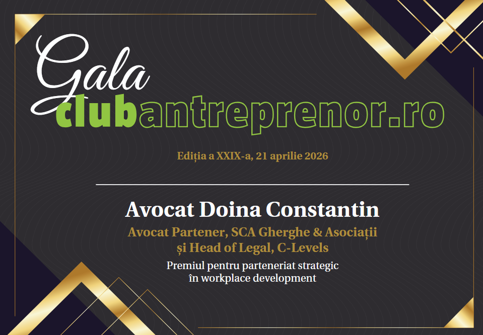 Avocat Doina Constantin, Avocat Partener, SCA Gherghe & Asociații și Head of Legal, C-Levels – Premiul pentru parteneriat strategic în workplace development